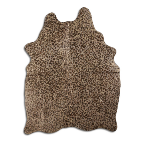 Acid Washed Cowhide Area Rug In Leopard Design On Beige With Gold