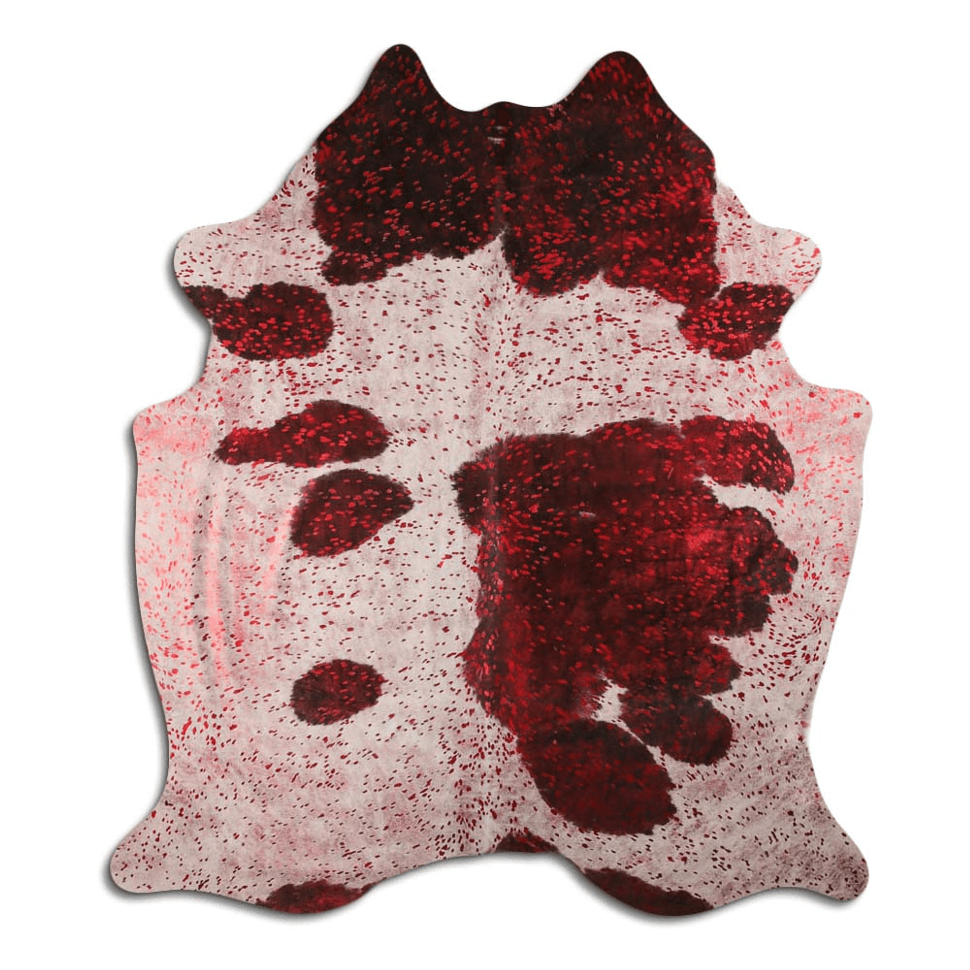 Acid Washed Red Metallic Cowhide Area Rug On Black And White